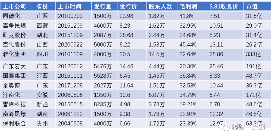 下面看看这12家股票的民爆企业。