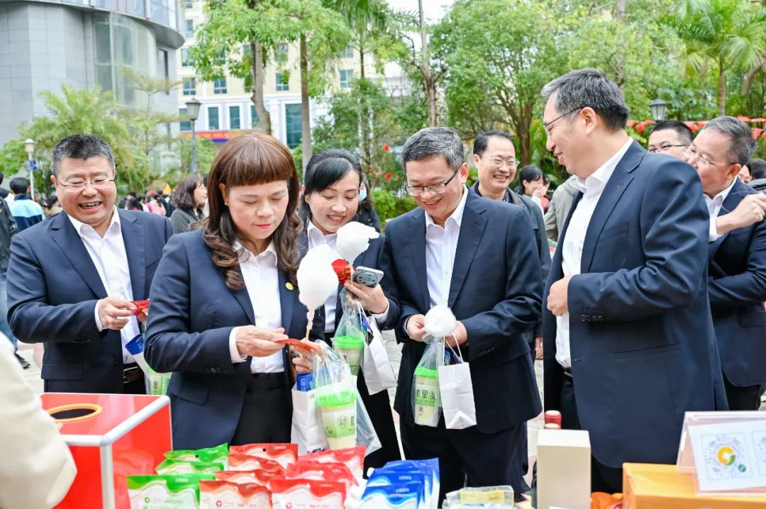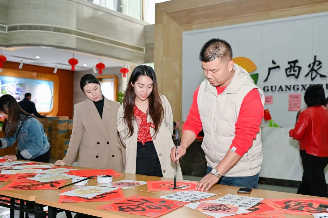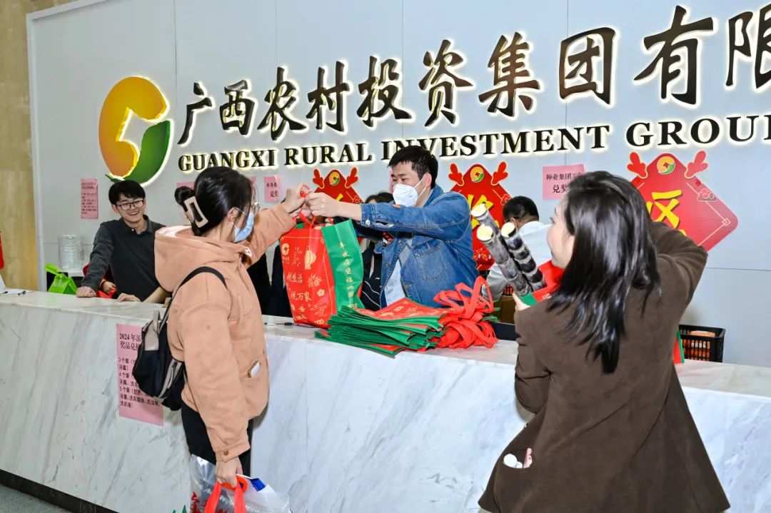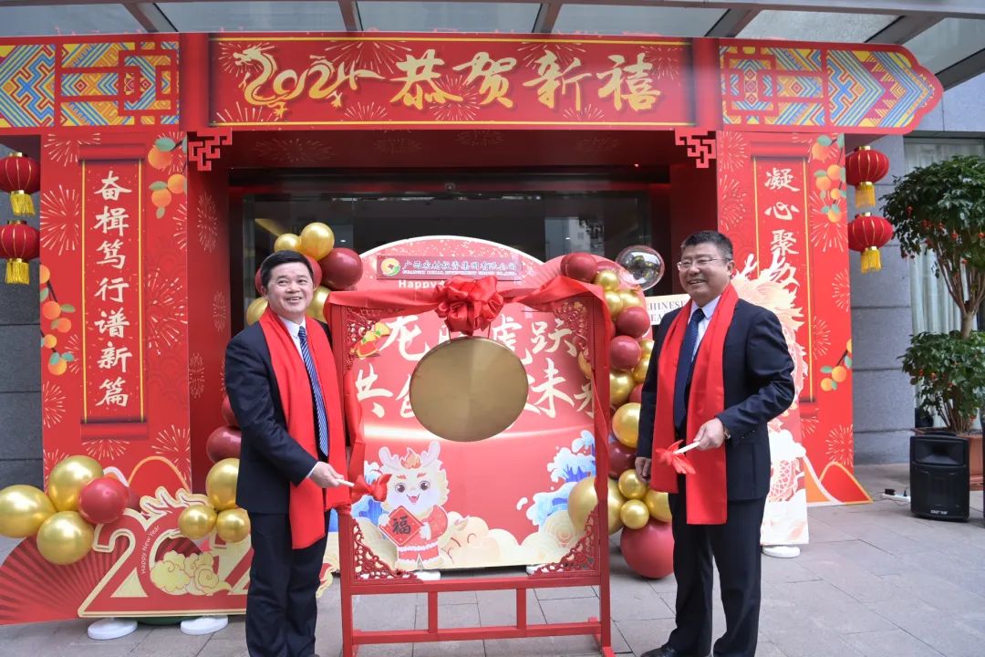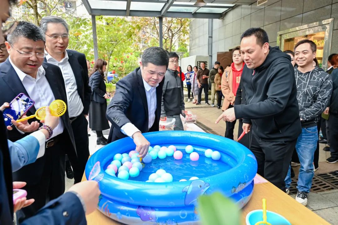 2月4日下午,广农集团在农投大厦一楼大堂及小广场举办2024年春节趣味游园活动。广农集团党委书记、董事长廖应灿等领导班子成员参加活动。