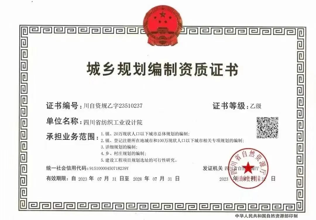 7月31日,我院获得四川省自然资源厅颁发的城乡规划资质证书。