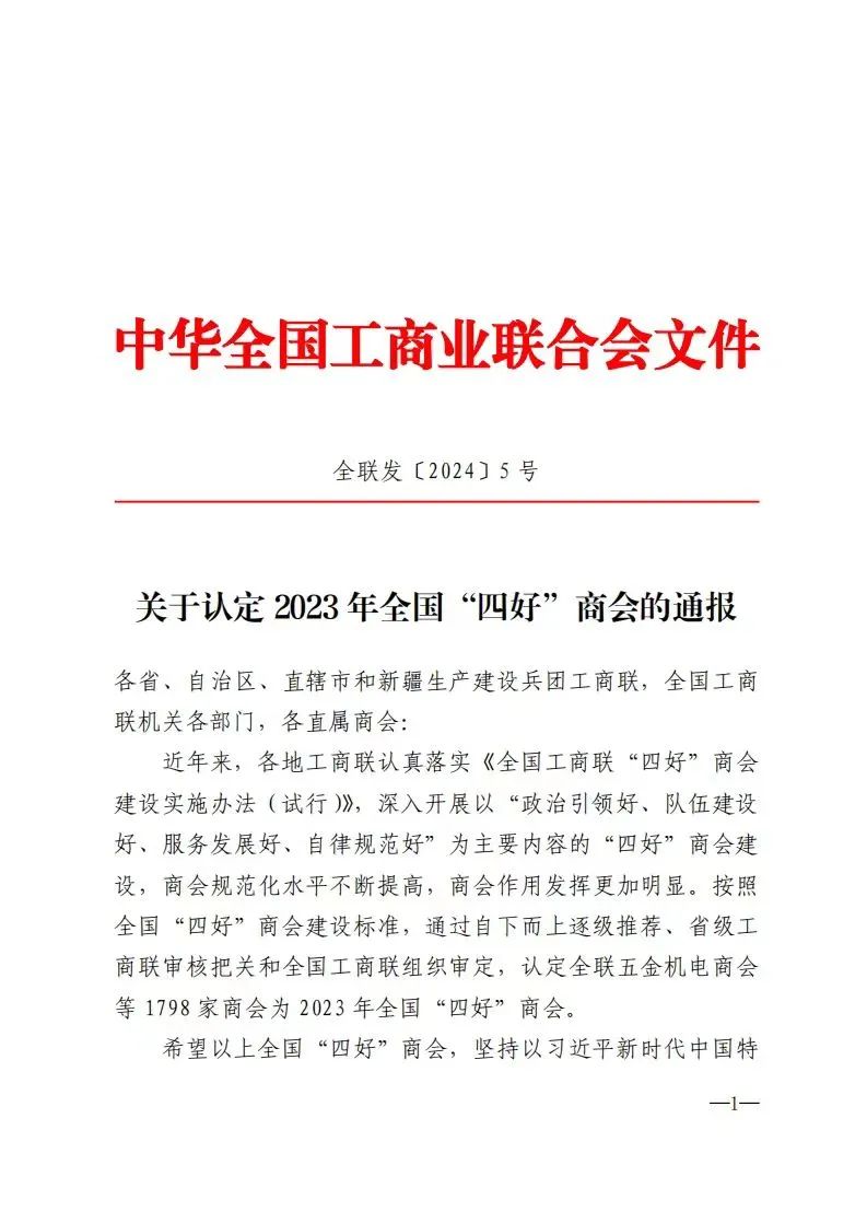中华全国工商业联合会办公厅全联厅发〔2024〕5号《关于认定2023年全国“四好”商会的通报》中,认定了一批政治引领好、队伍建设好、服务发展好、自律规范好的全国“四好”商会。陕西省川渝商会再次被认定为全国“四好”商会,这是陕西省川渝商会连续六年三次获此殊荣!