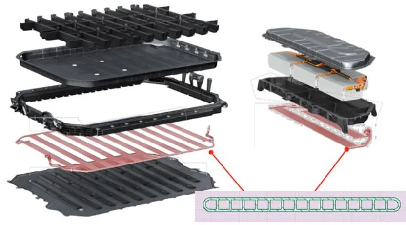 图3 audi e-tron三明治电池包中的口琴管