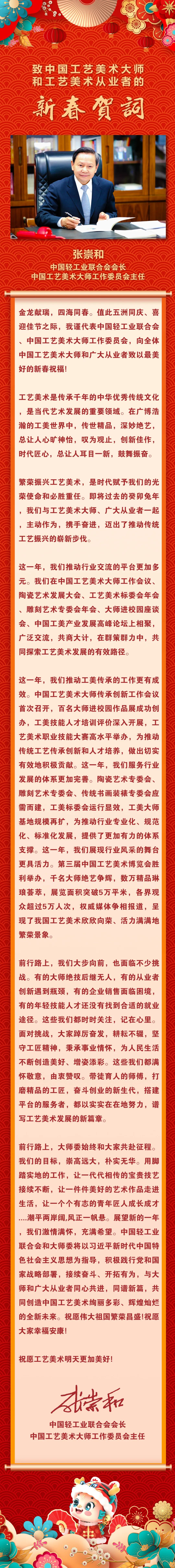 致中国工艺美术大师和工艺美术从业者的新春贺词