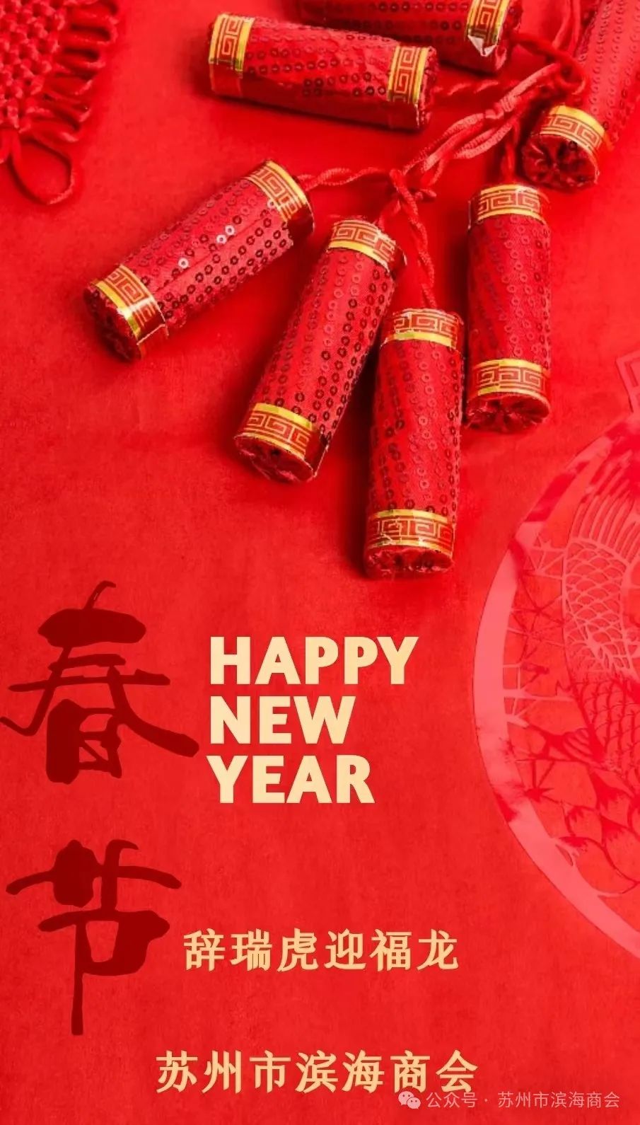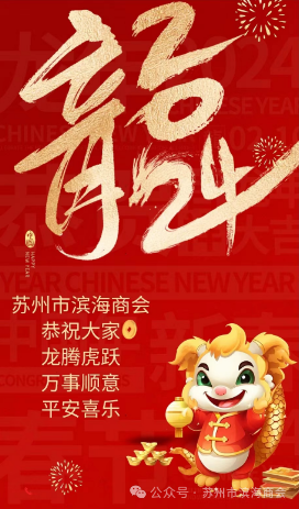 龙腾盛世,喜迎春来。在这新春佳节来临之际,辞旧迎新的美好时刻,苏州市滨海商会会长徐建成携商会领导班子向各位领导、乡亲、社会各界朋友一直以来对商会工作的关心和支持表示衷心的感谢,并致以诚挚的问候,祝大家春节快乐,诸事顺利,事业兴旺,阖家幸福、龙年吉祥! 苏州市滨海商会