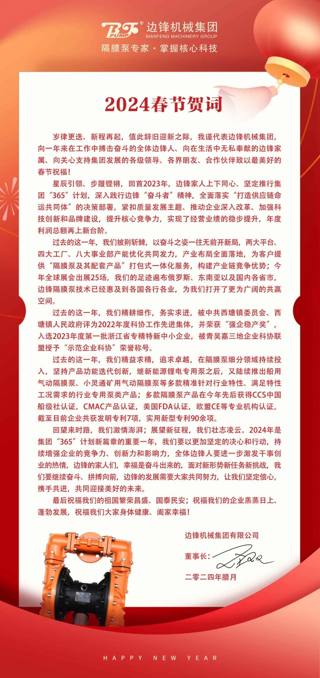 边锋机械集团2024年春节贺词