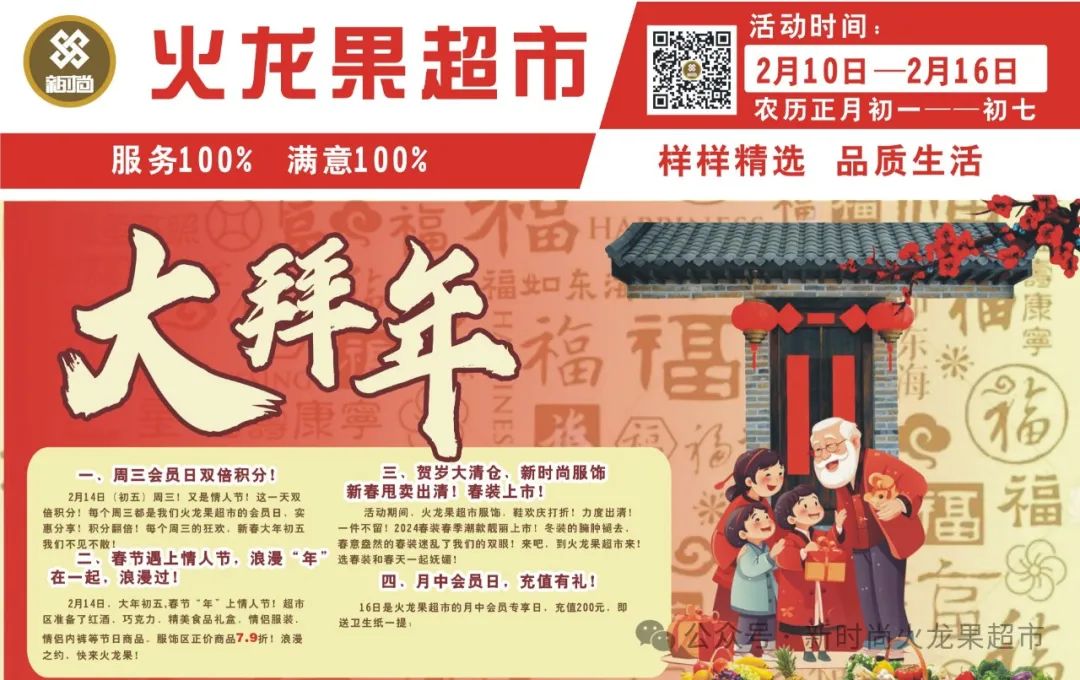 【新时尚商贸有限公司火龙果超市】2月10日-2月16日(农历正月初一至正月初七)大拜年