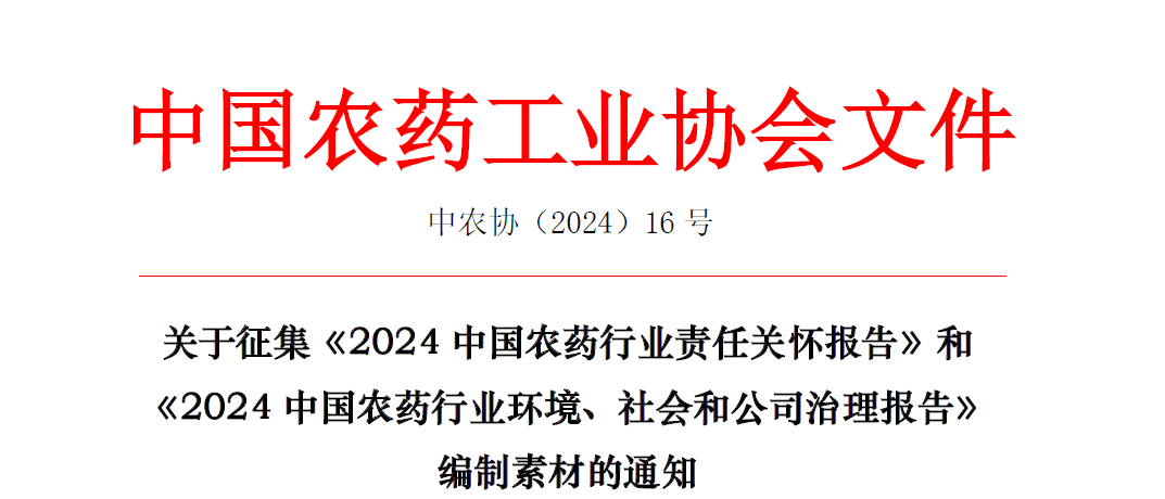 一、征集《2024中国农药行业责任关怀报告》《中国农药行业ESG报告》编制素材
