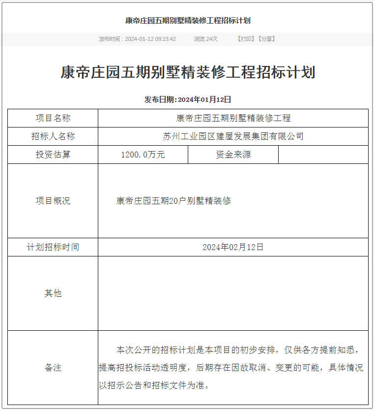 但就在近日,康帝庄园五期20户别墅精装修招标计划曝光!