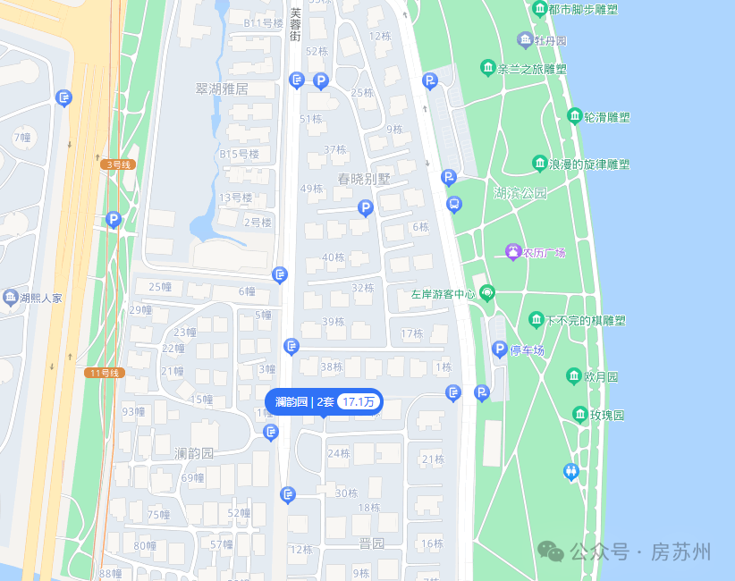 具体位置如下,同样直面独墅湖一线湖景,南边就是月亮湾;