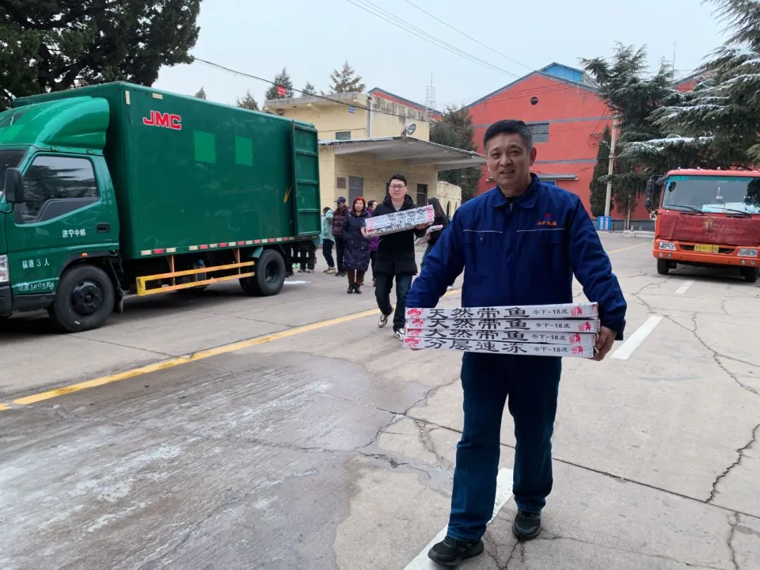 春节将至,为感谢全体职工一年来的辛勤付出,传达公司对职工的深切关怀,山矿公司精心准备了面粉、带鱼、香油、公司食堂制作的面食等年货福利,送上诚挚满满的春节祝福。