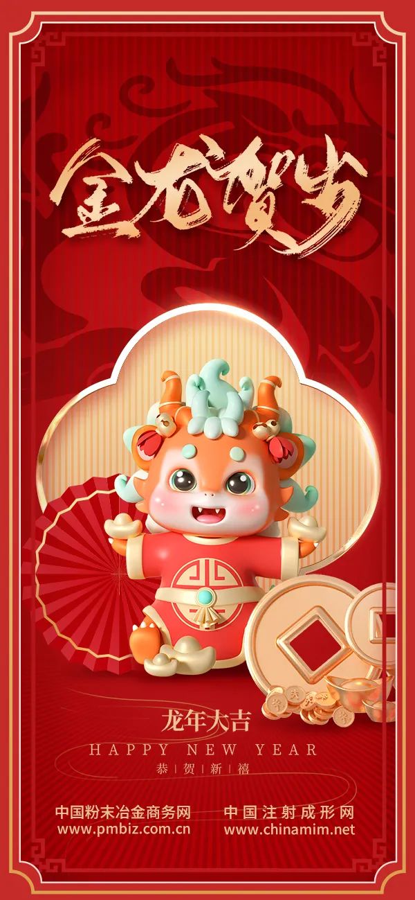 龙年到,好运来报到!值此新春佳节之际,中国粉末冶金商务网为一直关心、支持我们的用户献上最诚挚的祝福,祝您在新的一年里:事业腾飞,步步高升;家庭和睦,幸福美满。龙年行大运!