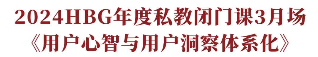 HBG私教闭门课3月上海场《用户心智与用户洞察体系化》X 君和基金游学,2日全天将会系统拆解8大板块系统课程X落地SOP工具量表X创始人闭门共创会。
