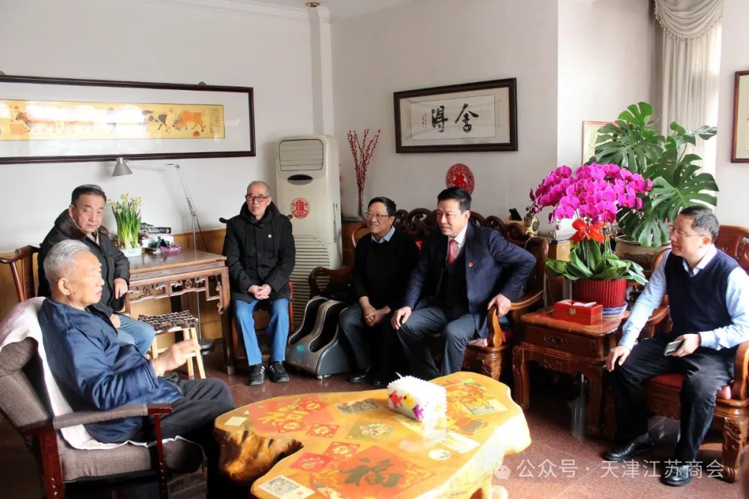 2024年2月1日,在龙年新春即将来临之际,天津市江苏商会林谷春会长带领领导班子和秘书处工作人员走访慰问钱其璈、蒋秉权、董瑛、史晓成、杨正武、陈德毅、刁九健、张再鸣、郑如坤等9位老同志,为他们送上最诚挚美好的新春祝福。参加走访慰问的活动的有:会长林谷春,党支部书记、副会长成建新,监事长杨国模,商会顾问耿昌怀,副秘书长孙健、李菲菲等。