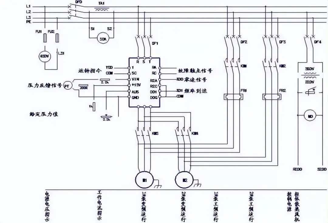 1、看电源,首先看清电源的种类,是交流还是直流,其次,要看清辅助电路的电源是从什么地方接来的,及其电压等级,电源一般是从主电路的两条相线上接来,其电压为380V,也有从主电路的一条相线和一零线上接来,电压为单相220V,也可以从专用隔离电源变压器接来,电压有140、127、36、6.3V等。