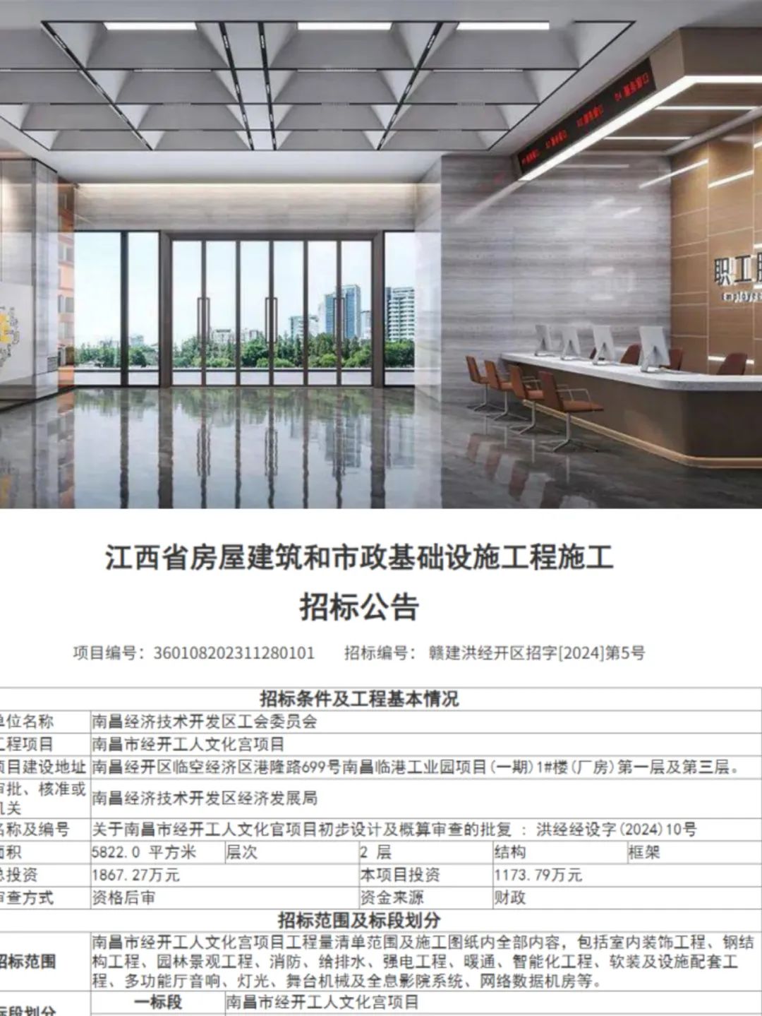 近日,南昌市经开工人文化宫项目已正式在江西省公共资源交易中心挂网招标,为项目实施进度及节点要求提供了保障。