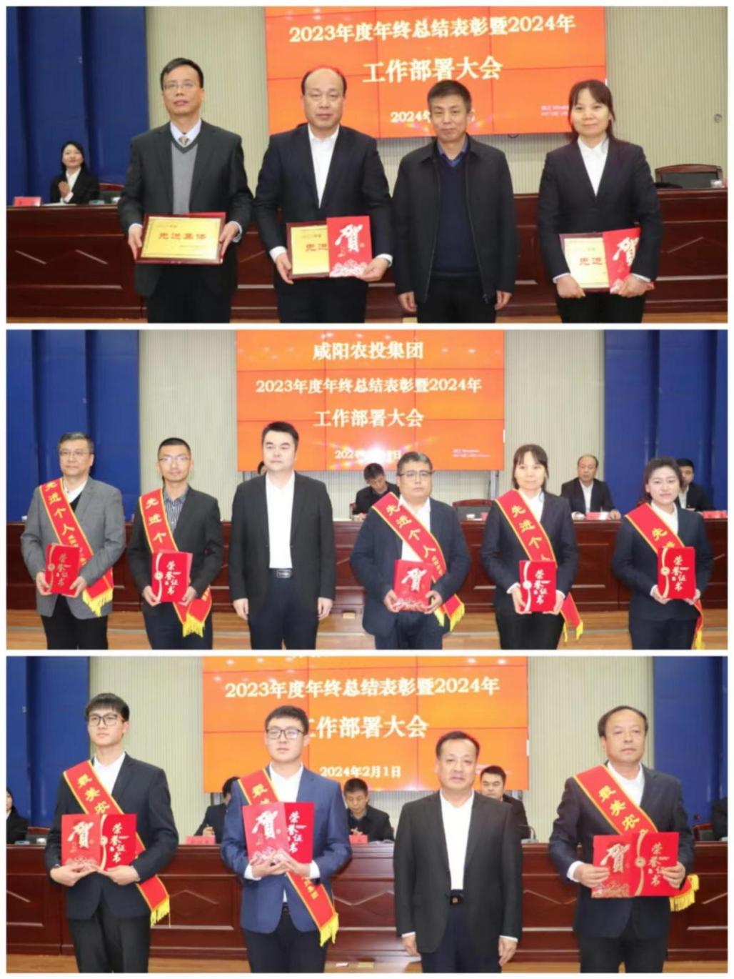 会上,对获得农投集团2023年度先进个人“樊美玲、张鲜宁、王巩、马军、杨乐”,最美农投人“秦永民、李亦博、薛宇”,先进集体“农投集团财务管理部、咸阳自来水有限公司、咸阳仲山牧智慧农业有限公司”等集体和个人进行了表彰奖励。