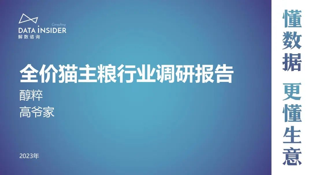 今天跟大家分享解数咨询发布的《解数咨询:全价猫主粮行业调研报告》。希望对大家有所帮助。报告具体如下: