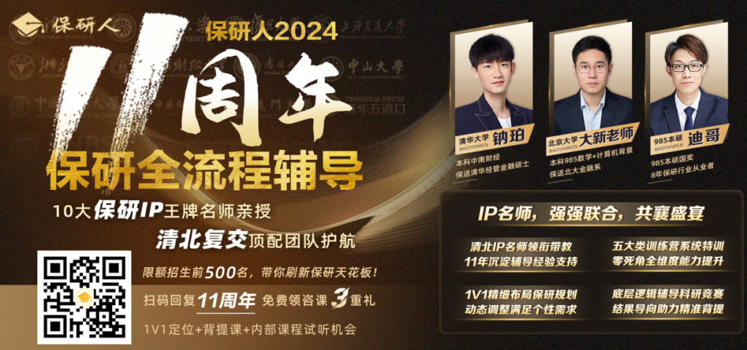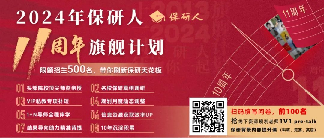 限招500人!VIP专项补短,2024保研人11周年旗舰计划重磅上线!