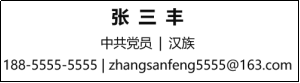 这一部分主要包括姓名、民族、政治面貌、联系方式、邮箱等,可以使用三行的排版方法,由少到多,层次分明,同行的不同内容可以用横杠隔开。注意联系方式(手机号)中间可以用“-”分隔,有利于老师阅读,细节上让老师增加好感。以张三丰同学为例,个人基本情况可以写成下图样式,置于简历页面顶端。