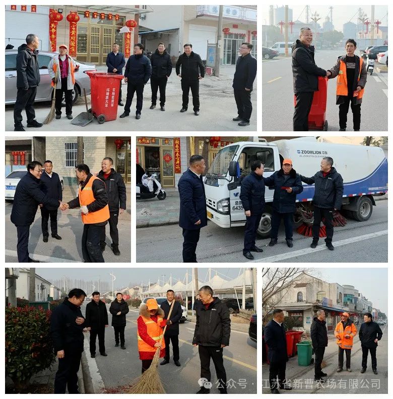 2月11日,农历大年初二,新曹农场公司党委书记、董事长、社区管委会主任崔静波,党委副书记、总经理、社区管委会副主任刘军,党委委员、副总经理、工会主席、社区管委会副主任李保春,副总经理冯汝东走访慰问坚守一线的环卫工人、产业工人和值班值守人员,向他们致以新春问候和美好祝福。
