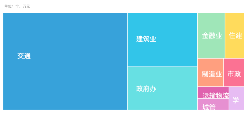 本年,全国桥梁领域招投标项目中,交通以2230个项目占据采购数量榜首,建筑业、政府办紧随其后,分别为699个、558个,前3类客户采购量占全部项目数量的56.35%。各类客户采购项目数量分布如下图: