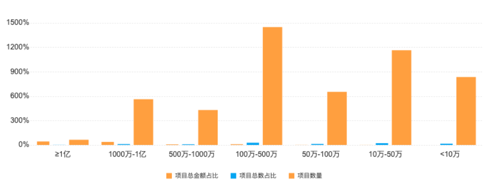 项目金额1000万-1亿的项目数量为:562个;