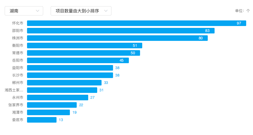 本年,湖南桥梁领域招投标项目数量方面,怀化市、邵阳市、株洲市中标项目较多,分别达到97个、83个、80个,前3个城市占湖南桥梁领域项目数量的41.07%。
