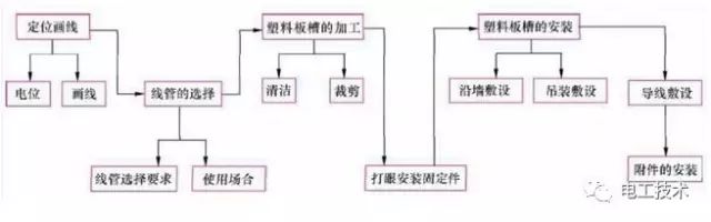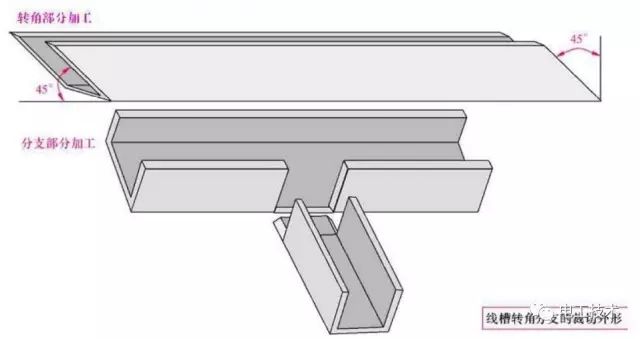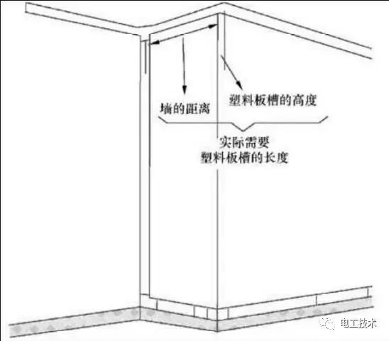 根据接线盒或电气设备的连接和转角情况,确定实测的长度来进行加工塑料板槽。其中先确定弯曲部分,再确定直线部分。
