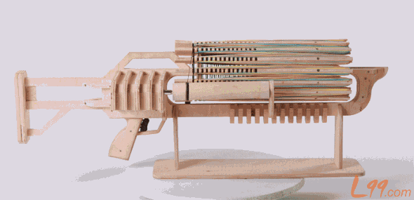 皮筋枪是一类经典的玩具,多以木质材料或金属材料为枪身,通过简单的设计,巧妙地利用橡皮筋自身弹性势能作为动力,将橡皮筋自身作为子弹进行发射。