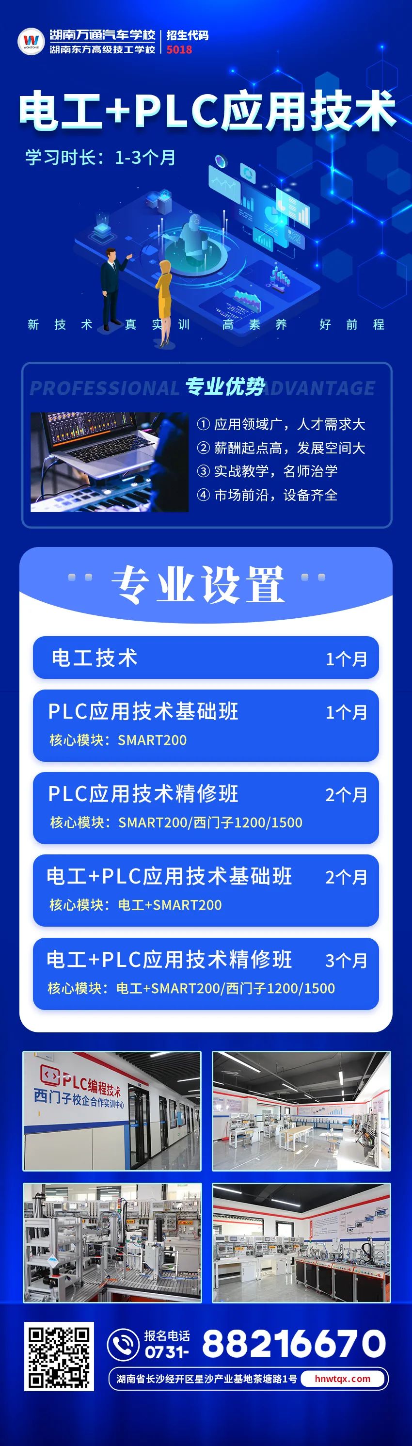 所以如果您也处在职业发展的瓶颈期、迷茫期,可以考虑一下学习PLC。如果你担心自己能力不足或没有基础的话,湖南万通可以帮助你成为一个优秀的PLC电气工程师。