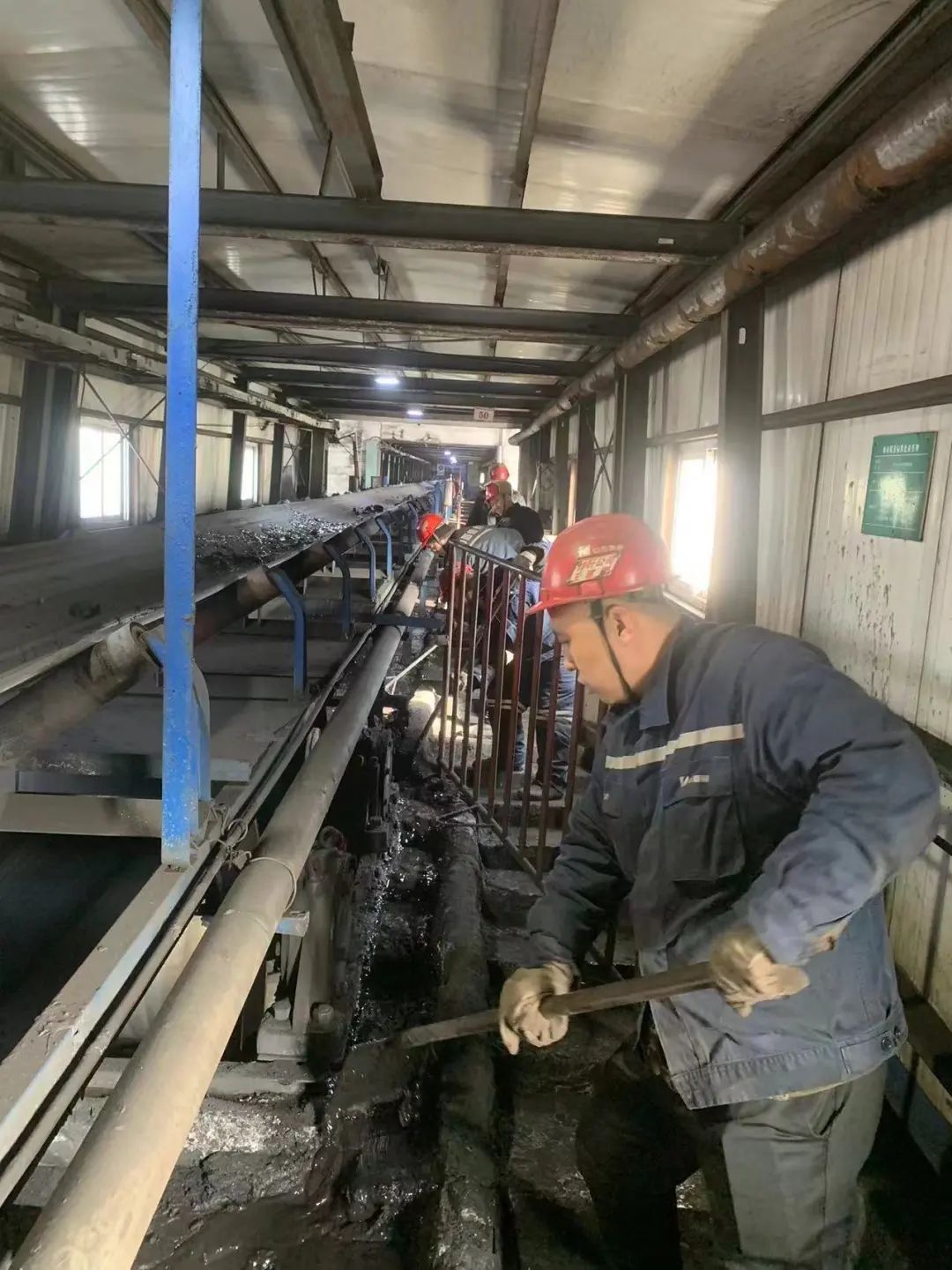 近期,伴随着气温逐步回升,排矸皮带巷内上冻煤泥融化后流入皮带走廊台阶上,极易给职工作业造成滑倒、摔伤等安全风险隐患。为此,排矸公司组织相关人员对整个皮带巷的煤泥水及淤泥进行了全面清理,确保了皮带作业环境安全。同时,针对煤尘大的情况,排矸公司对各作业地点的煤尘进行了全面清理,保证工作环境卫生动态达标。