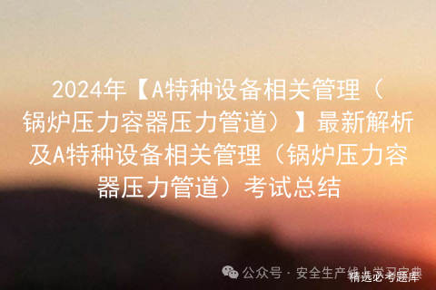 A特种设备相关管理(锅炉压力容器压力管道)最新解析是安全生产模拟考试一点通生成的,A特种设备相关管理(锅炉压力容器压力管道)证模拟考试题库是根据A特种设备相关管理(锅炉压力容器压力管道)最新版教材汇编出A特种设备相关管理(锅炉压力容器压力管道)仿真模拟考试。2024年【A特种设备相关管理(锅炉压力容器压力管道)】最新解析及A特种设备相关管理(锅炉压力容器压力管道)考试总结