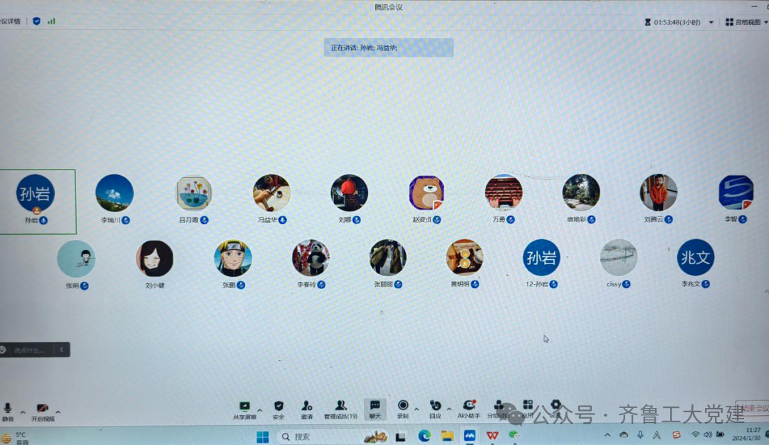 1月30日,机械制造党支部在机电楼A217会议室开展了“回顾2023,展望2024,党员晒成绩单”主题党日,机械制造党支部全体党员参加了,还邀请了机械制造系的党外教师一起参加。学部党委书记吴笑兵、正处级组织员周玮玲、学部副主任杜劲出席。采取线上线下相结合的形式进行,由机械制造支部书记衣明东主持。