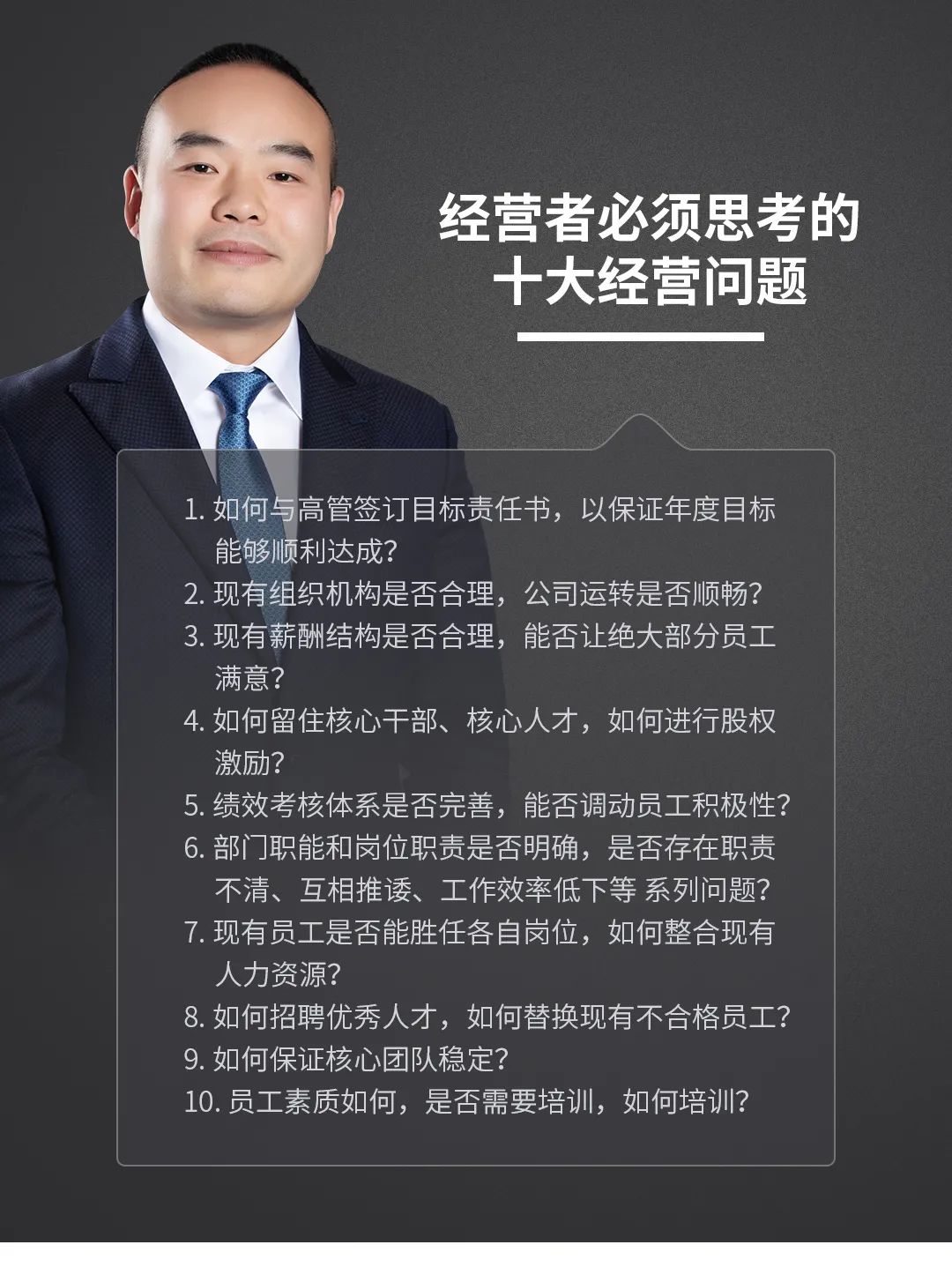 建立一支有战斗力的企业团队,老板不能凭一己之力!更要学会依靠团队、依靠系统的力量!将成型的业务流程教给员工、将成体系的管理制度导入团队、用操盘的思维去经营企业!把自己从企业中解放出来,老板才能站在更高的层次去与市场博弈!