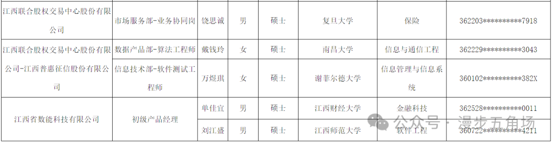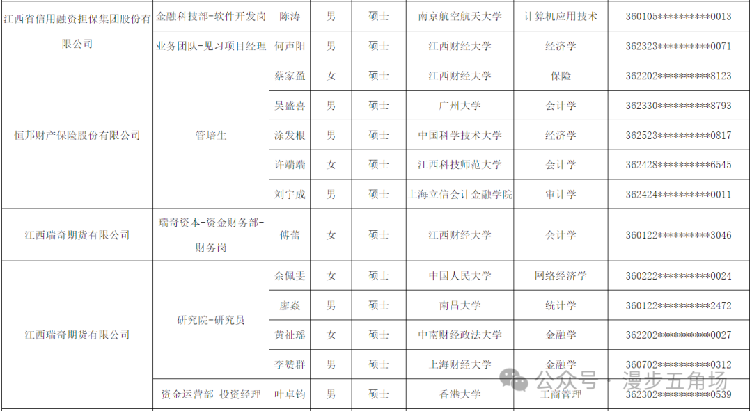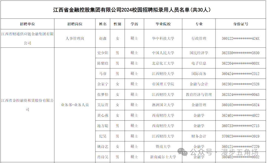 以下为江西金控2024年校园招聘拟录取名单: