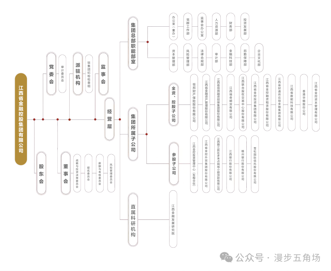 目前江西金控已控股或参股江西银行、赣州银行、恒邦保险、瑞奇期货、江西省信用融资担保集团、江西省金融资产管理公司、江西省金控融资租赁公司、江西省金控基金等17家金融机构,基本实现了金融牌照全覆盖,成为江西省地方金融业态最全、业务领域最广的综合性金融控股集团。