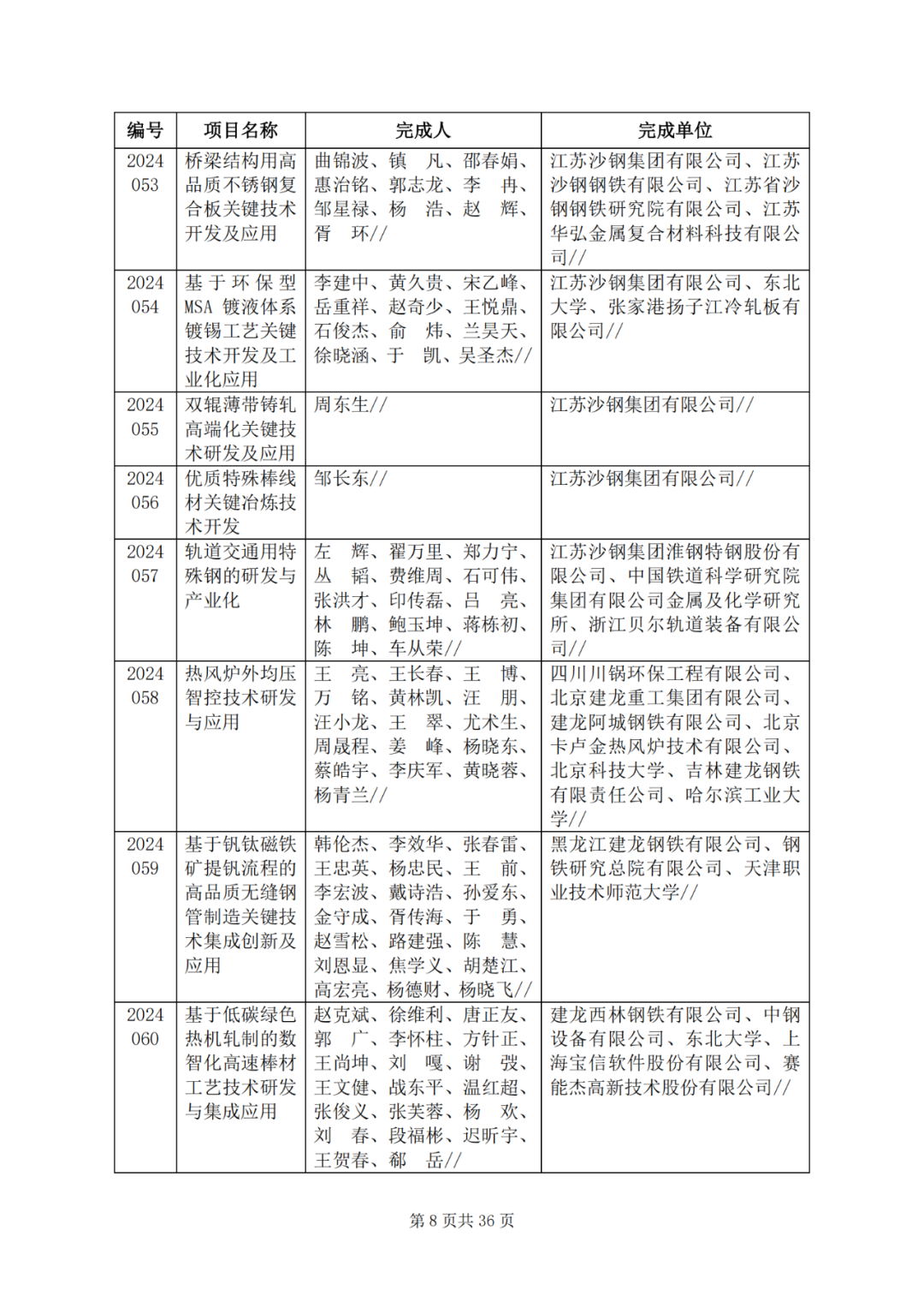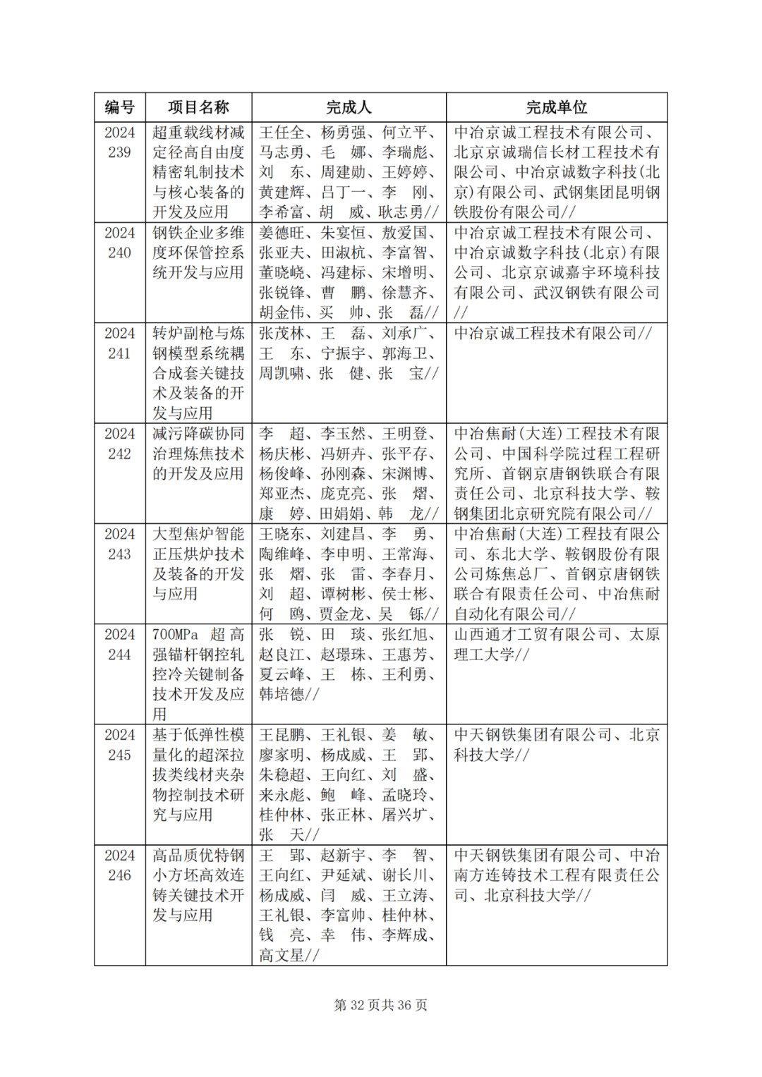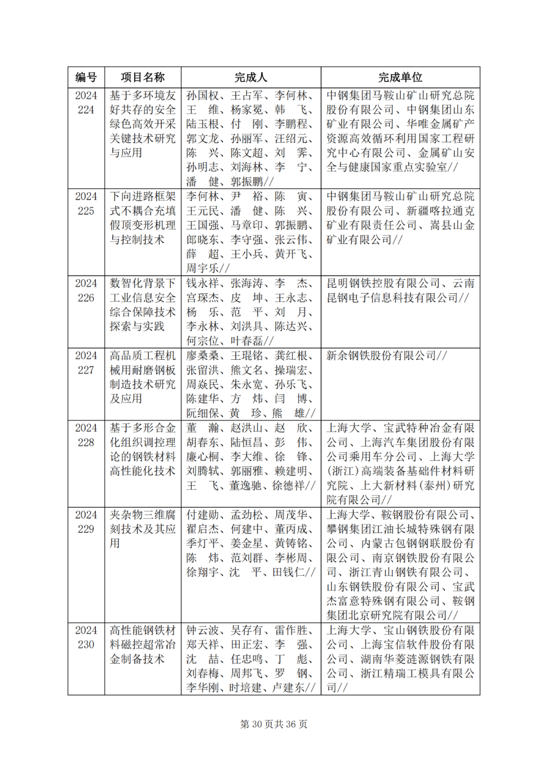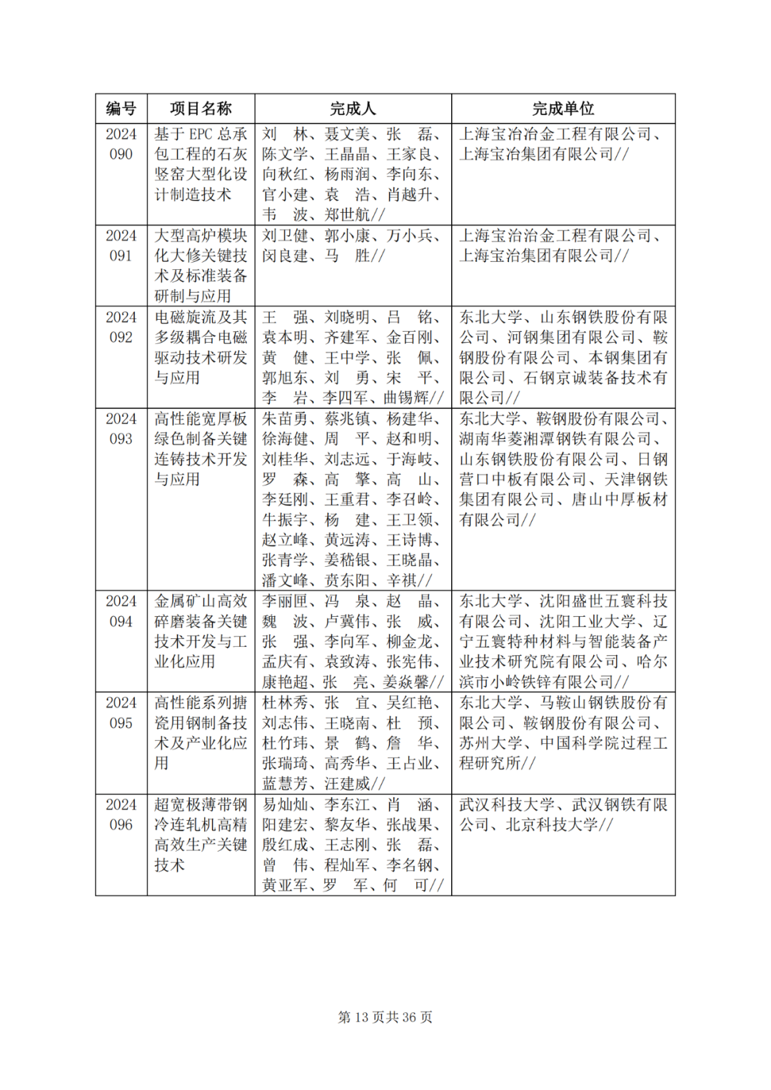 2024年中国钢铁工业协会、中国金属学会冶金科学技术奖(简称冶金科学技术奖)共收到85个单位申报的科技成果282项。现将申报项目的名称、完成单位和完成人等向社会公示(见附件1),公示期一个月。