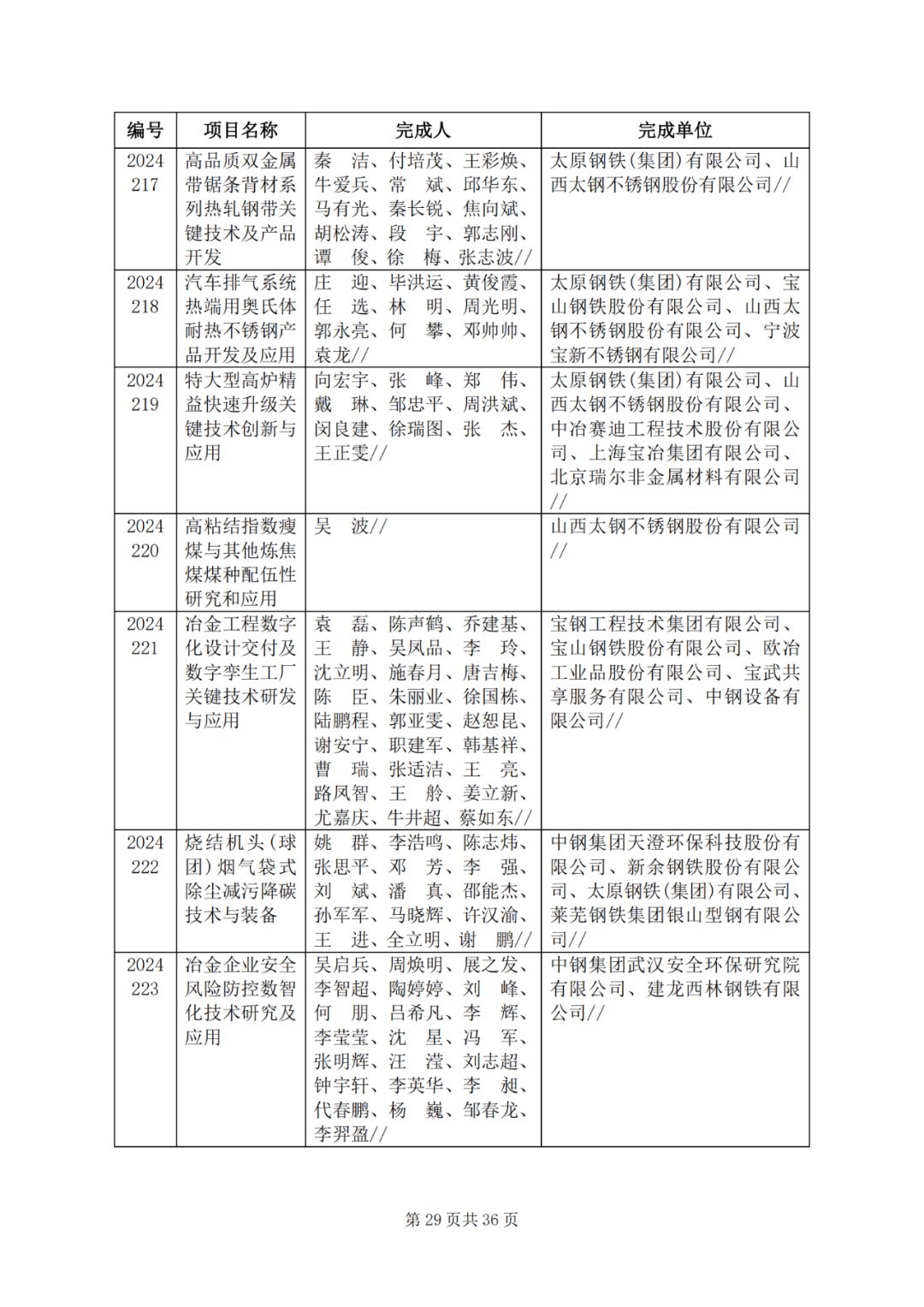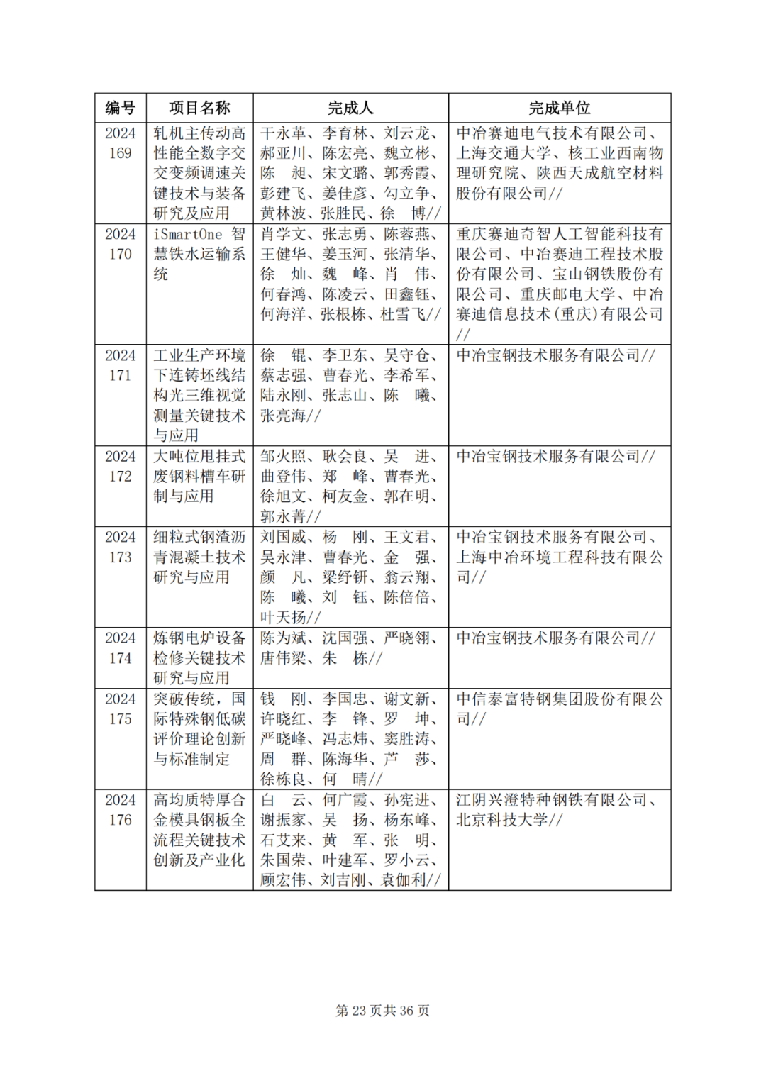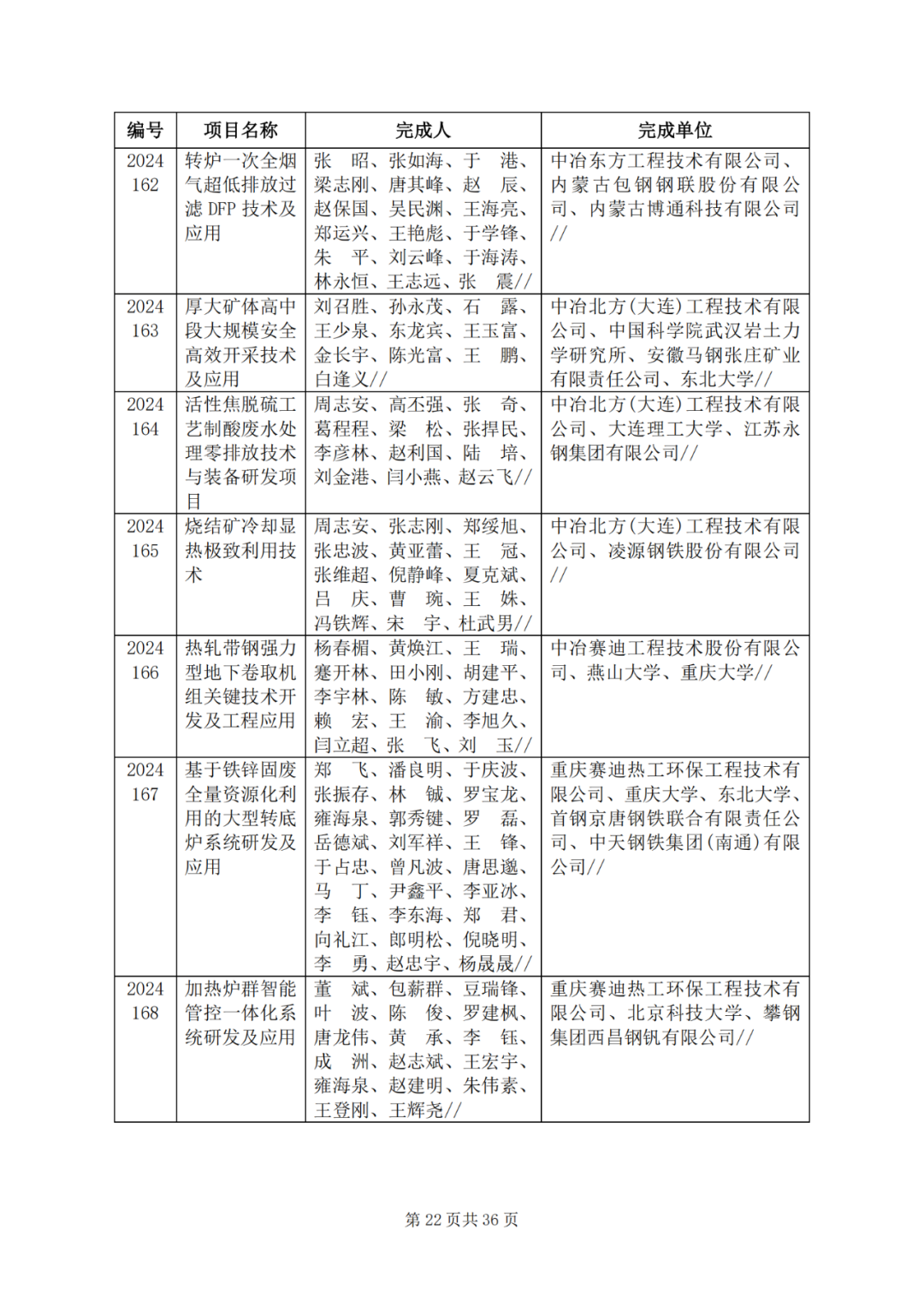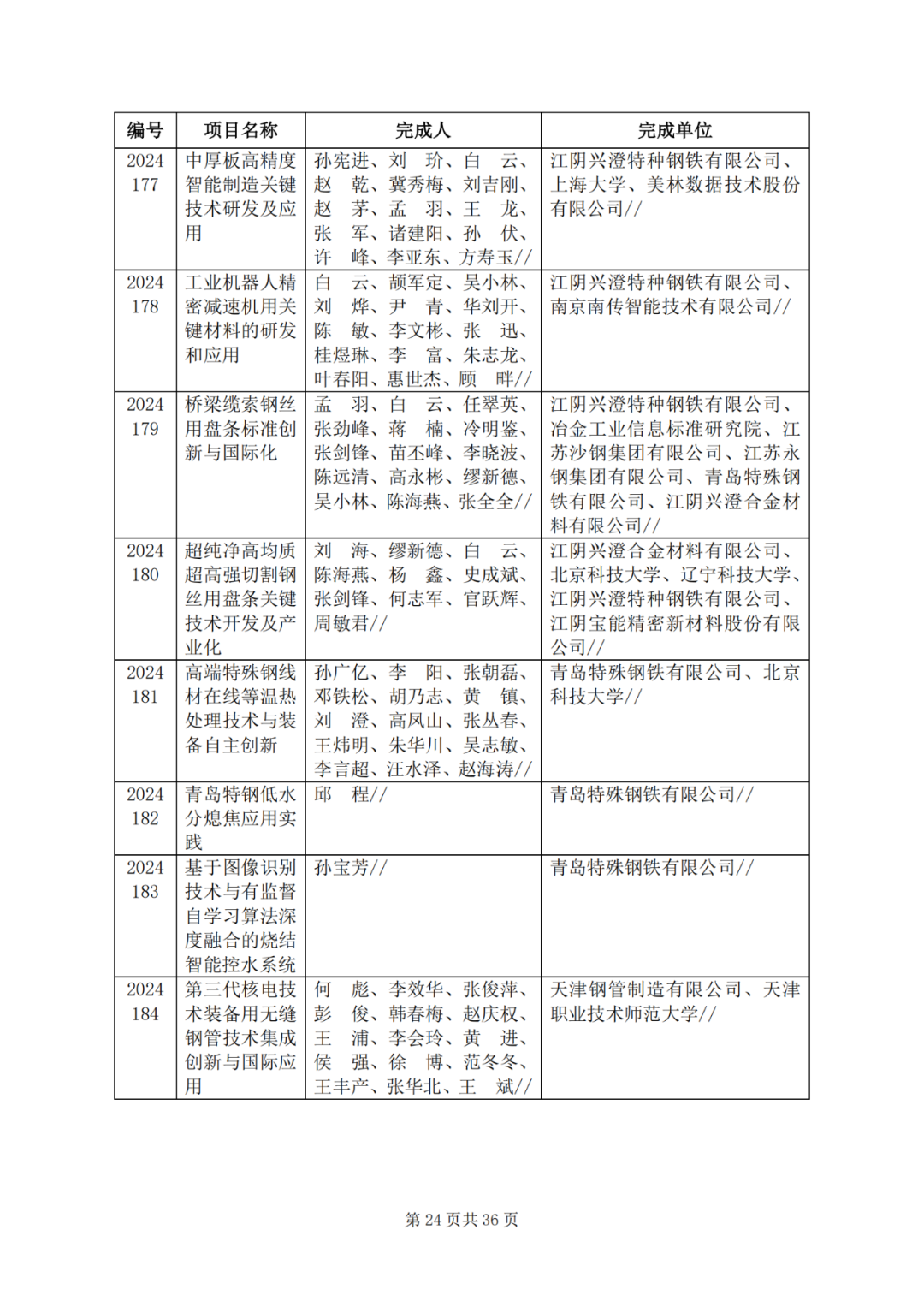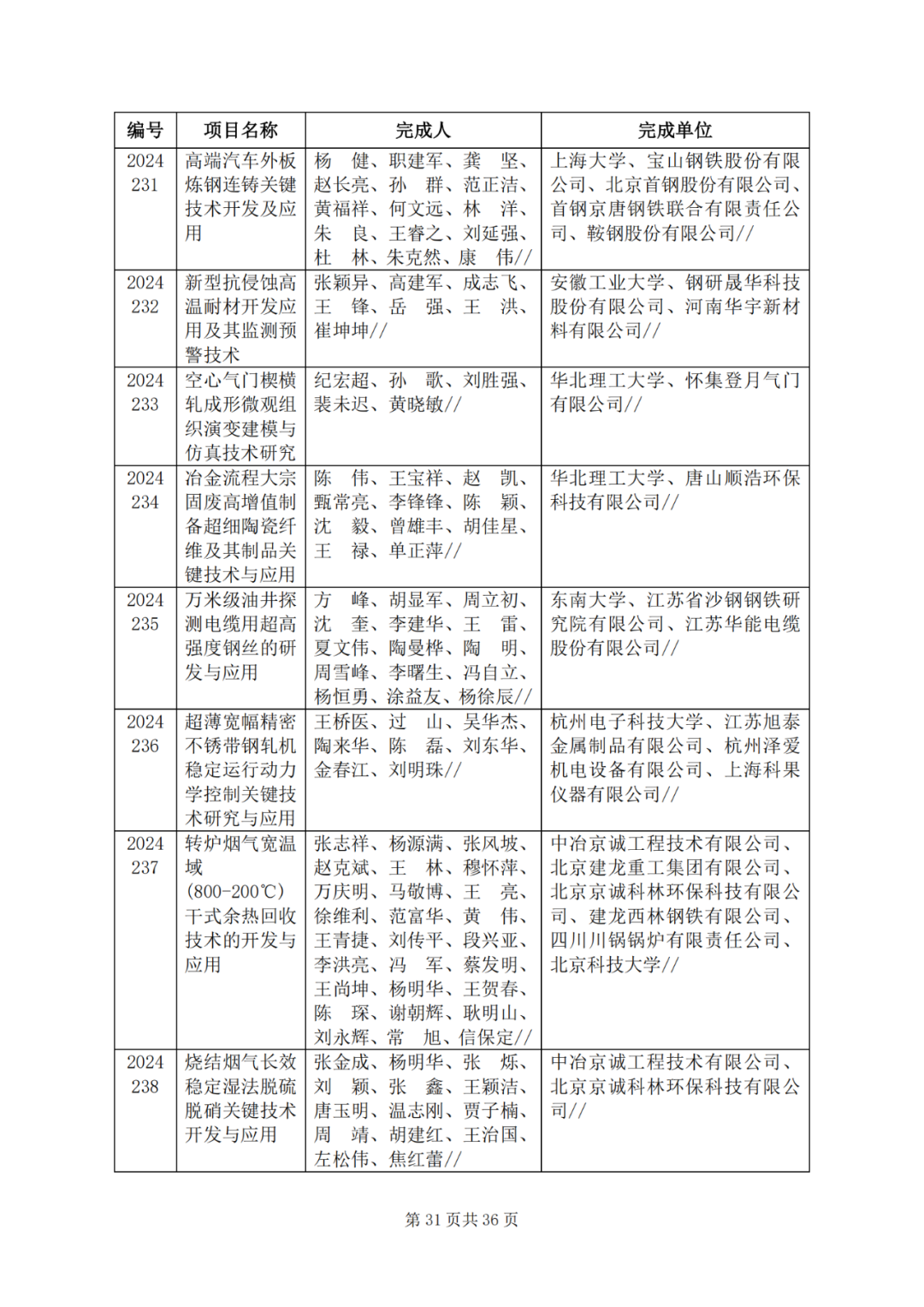 2024年中国钢铁工业协会、中国金属学会冶金科学技术奖(简称冶金科学技术奖)共收到85个单位申报的科技成果282项。现将申报项目的名称、完成单位和完成人等向社会公示(见附件1),公示期一个月。