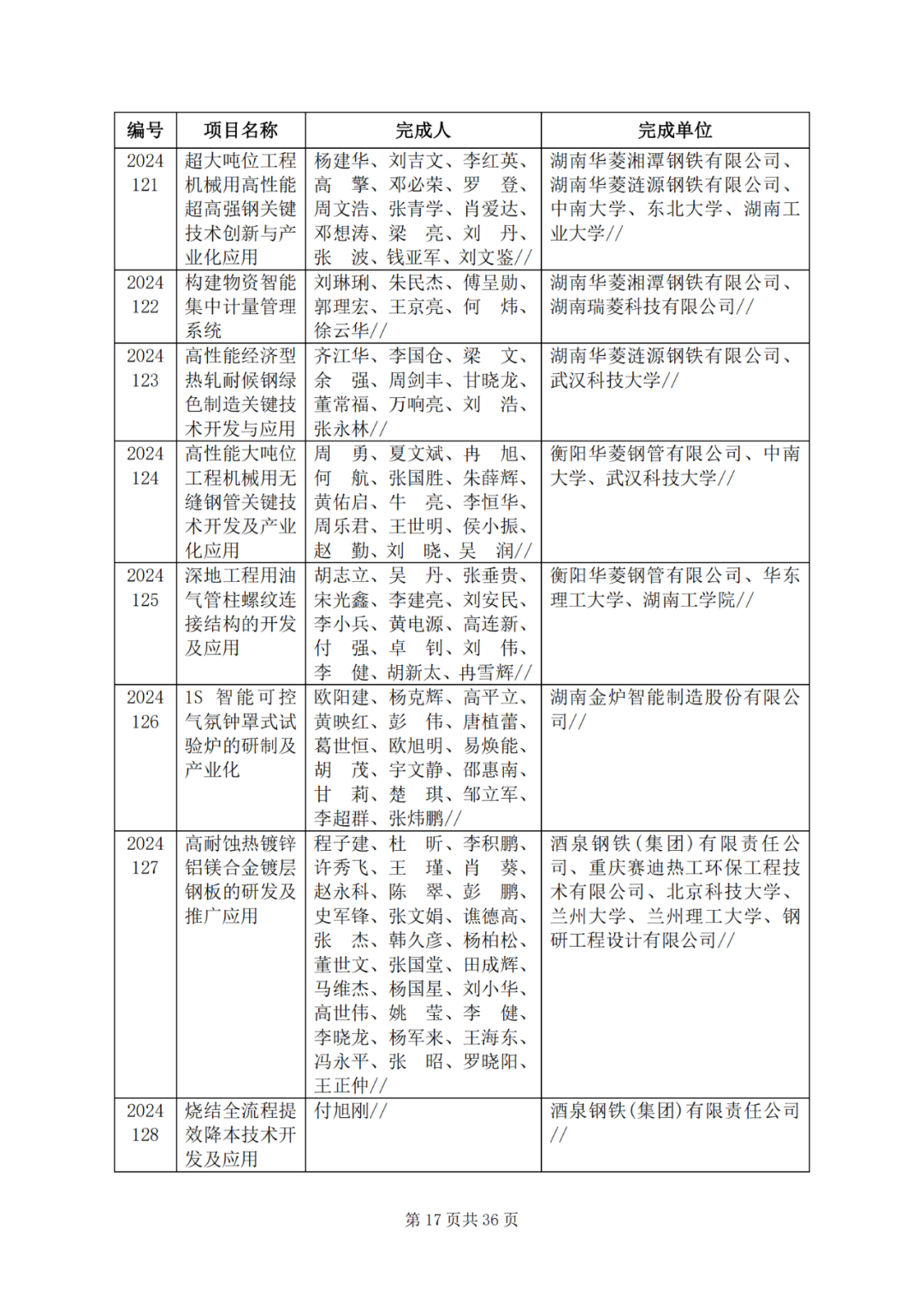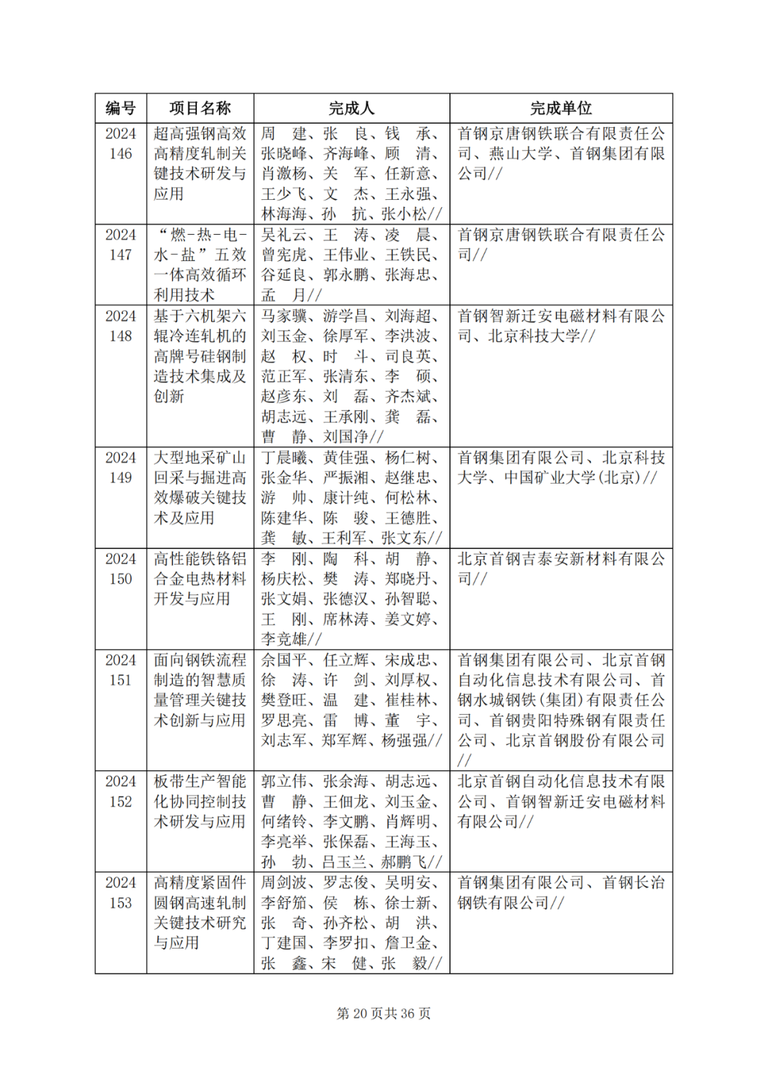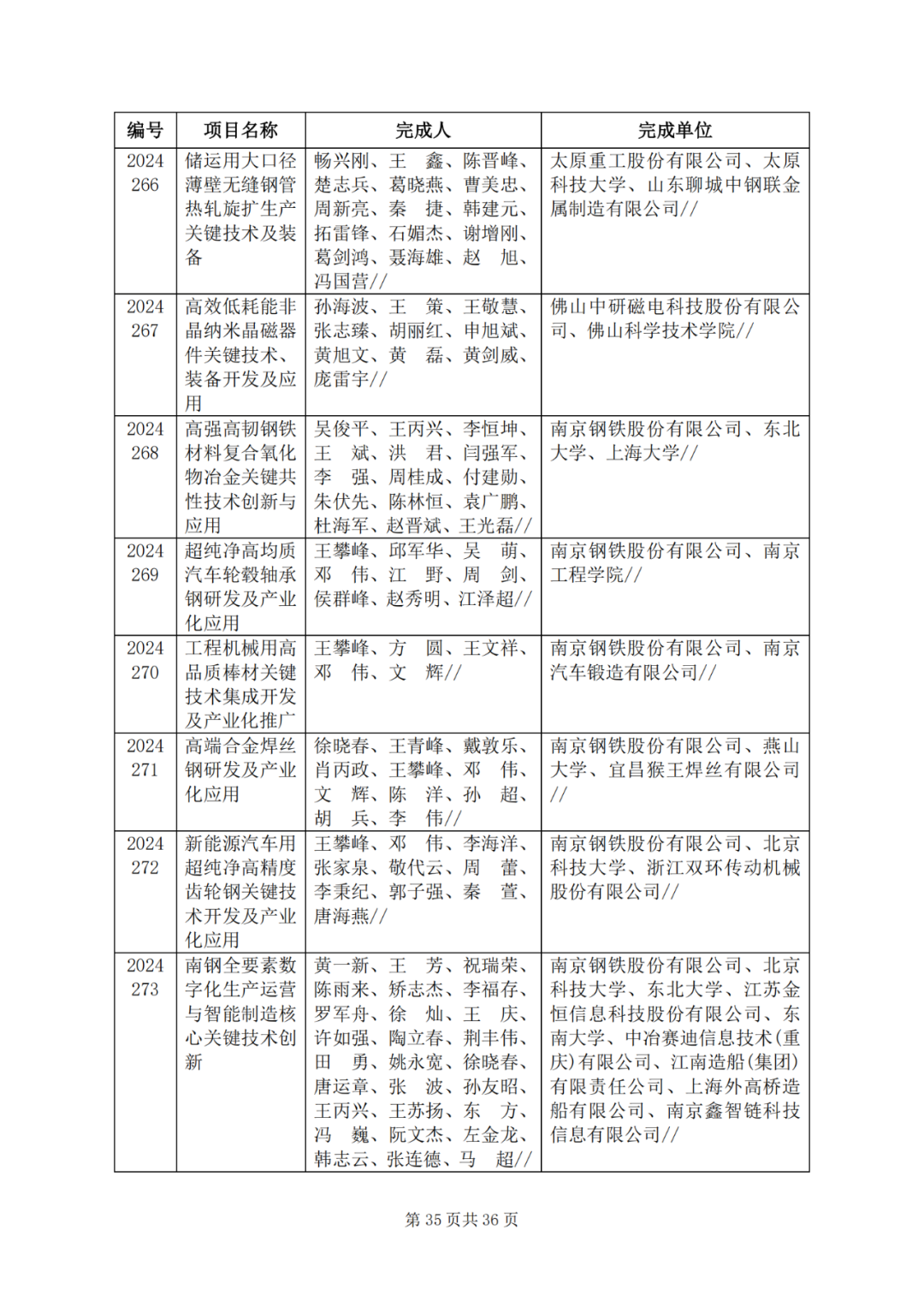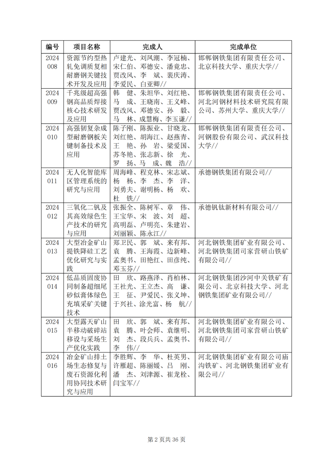 2024年中国钢铁工业协会、中国金属学会冶金科学技术奖(简称冶金科学技术奖)共收到85个单位申报的科技成果282项。现将申报项目的名称、完成单位和完成人等向社会公示(见附件1),公示期一个月。