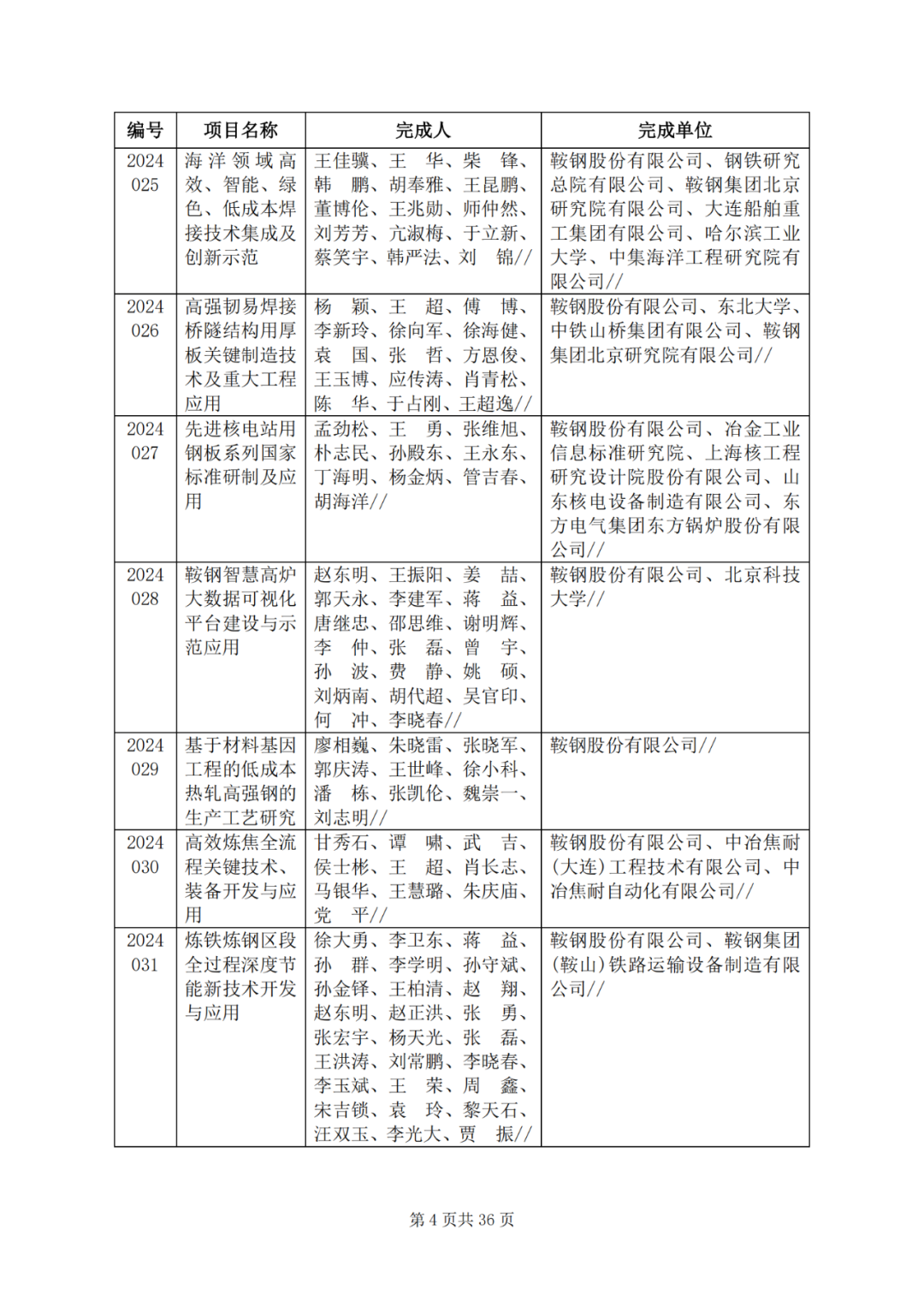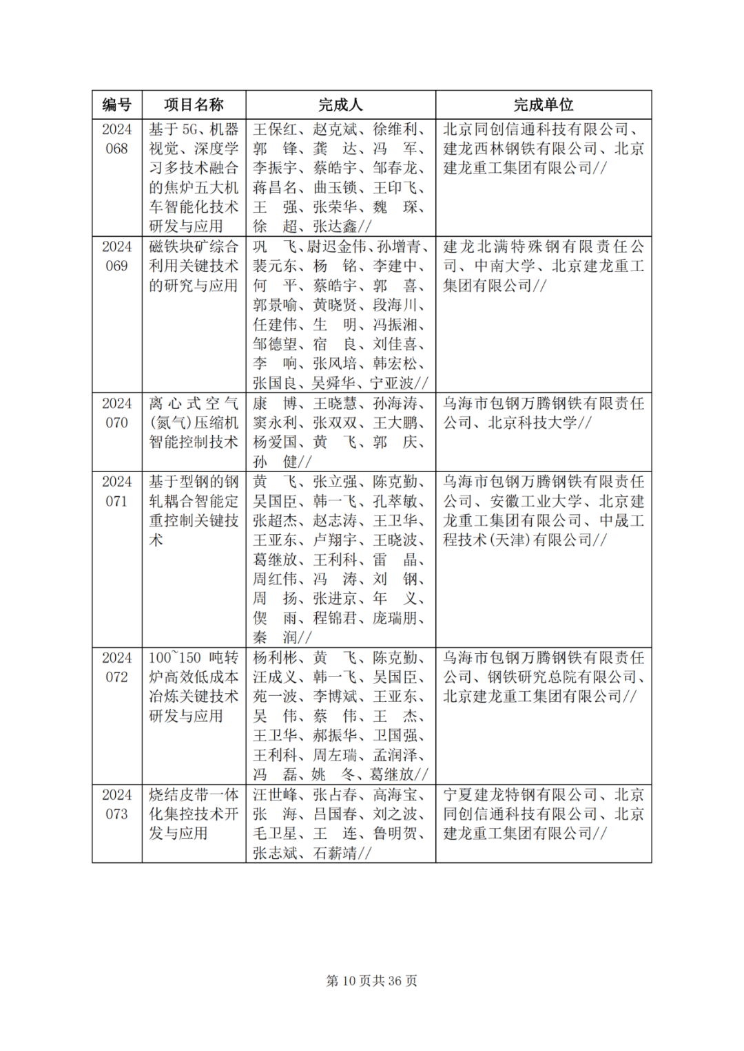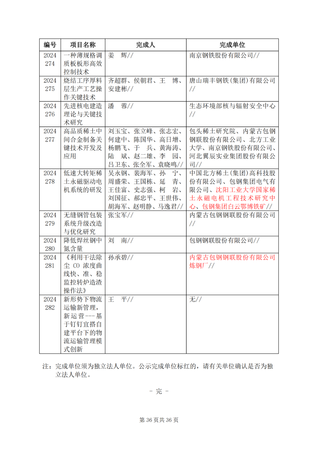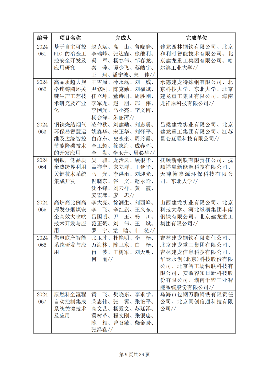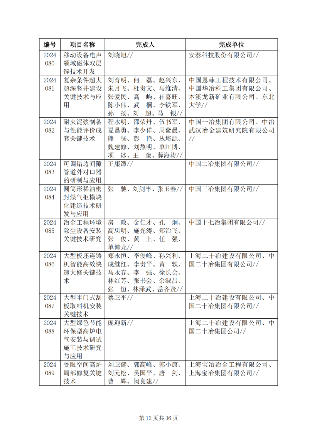 2024年中国钢铁工业协会、中国金属学会冶金科学技术奖(简称冶金科学技术奖)共收到85个单位申报的科技成果282项。现将申报项目的名称、完成单位和完成人等向社会公示(见附件1),公示期一个月。