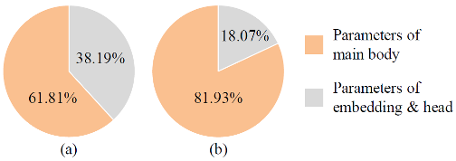 参数量占比:(a)使用直接继承的大词表 (b)使用裁剪后的词表