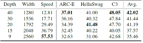 模型架构的配置,例如宽度、深度和扩展率,对小语言模型的最终性能有相当大的影响。作者做了大量实验进行分析,发现深度影响小语言模型效果最重要的因素。一个更深的模型效果更好,但在 GPU 的推理速度也会低一些,以下是在 50B 数据上具体的实验结果。