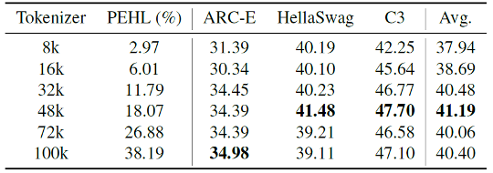 多语言大模型往往采用一个很大的词表来覆盖各种语料库,但是对于小模型来说,一个大词表就已经占用很多参数了。例如,Qwen-7B、Baichuan2-7B 和 PanGu-π-7B 的词汇量分别为 151936、125696、100883。它们的头部和嵌入层的参数分别占总体参数的 16.12\%、13.72\%、10.91\%。而对于 1B 模型来说模型,使用相同的分词器会占到模型大小的 30% 以上。