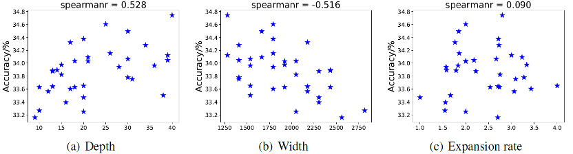 固定模型参数量为 1B 左右,模型效果与深度、宽度、扩张率之间的关系。