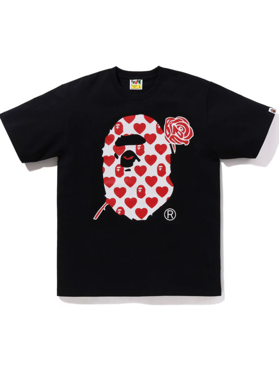 今年BAPE则是直接将象征着爱情的玫瑰花刻画到了标志性的猿人头上。