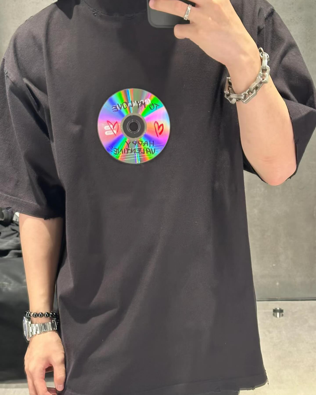 本季带来的情人节单品继续延续此前出其不意的怪趣设计,将一张特别定制的CD光碟搭配上搞怪涂鸦,巧妙地印在T恤和卫衣的胸前位置,给人一种别致而引人注目的光影效果。