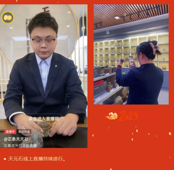 为充分利用新春假期宣传天元石文化,推介天元石产品,天元石文化馆“线上+线下”确保持续“在线”推广营销,参观人员络绎不绝,家乡奢石销售火爆。