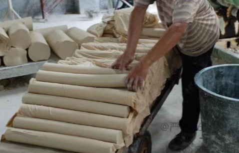 制作瓷器的这些材料还需要经过后续的研磨、压滤、配料加工成棒料,就可得到制作瓷器的原材料,即制瓷黏土。
