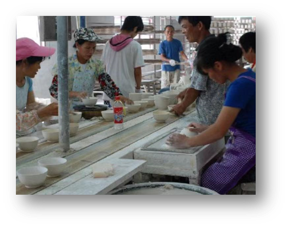我国古代的制瓷工艺由于技术条件的缺乏,瓷器制作工艺较为繁琐,每一步都为人工操作。