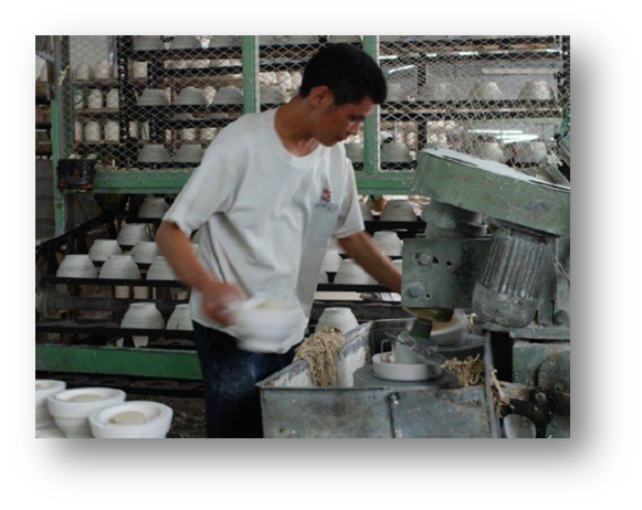 现代制瓷工艺中的几个重要步骤,首先就是配泥,瓷器的制作,选用不同的黏土和不同的火温就可制作出丰富多样的瓷器。制好的黏土就可以根据人们的需要制作成不同形状的坯胎。接下来就是施釉环节,施釉可使制成的瓷器表面光洁滑腻,呈现出不同的色彩。最后将未成型的瓷器放入炉窑中根据不同的火候烧制不同的时间,就可得到多种多样的瓷器。
