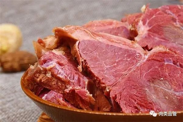 ②焖煮:将腌制好的驴肉放在清水中浸泡1小时,洗净,捞出放在案板上沥去水分。接着,将驴肉、辅料放进老汤锅内,用大火煮沸2小时后改用小火焖煮8~10个小时,出锅即为成品。